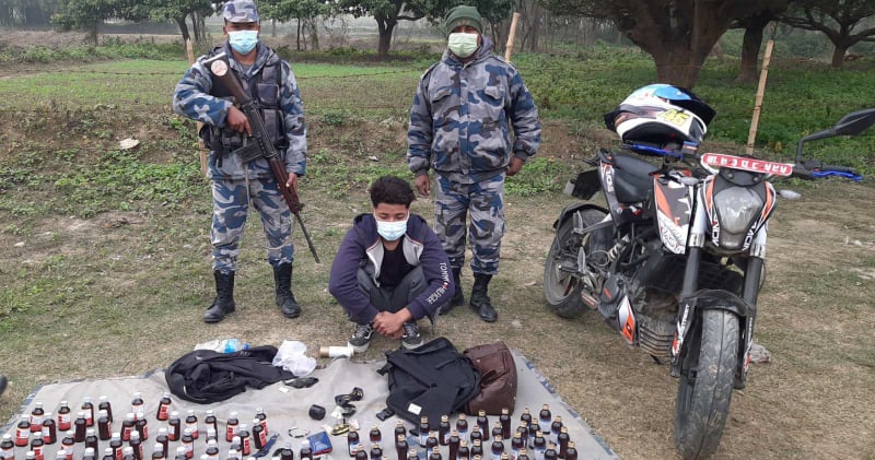 बाराबाट लागुऔषध सहित एकजना युवकलाई सशस्त्र प्रहरीले पक्राउ गरेका छन् । बिहिबार अपरान्ह करिब साढे ३ बजेको समयमा बाराको बिश्रामपुर गाउँपालिका वडा नं. ३ मुसर्वा चोकमा बि.ओ.पी. बरैनिया र प्रहरी चौकी बलिरामपुरबाट खटेको प्रहरी टोलीले भारतबाट आउदै गरेको बा ७३ प ८५९५ नम्बरको मोटरसाइकललाई चेक जाँच गर्दा विन सिरेक्सा डाइलेक्स डिसी २ झोला बरामद गरेको सशस्त्र प्रहरी बरैनियाले जनाएका छन् । पक्राउ पर्नेमा मकवानपुर जिल्लाको हेटौडा उपमहानगरपालिका वडा नं. ९ पशुपतिनगरका २१ वर्षीय कृशिस गुरुङ्ग रहेको सशस्त्र प्रहरीले जनाएको छ पक्राउ परेका गुरुङ्ग र लागुऔषध तथा मोटरसाइकल प्रहरीलाई बुझाउने प्रक्रियामा रहेको सशस्त्र प्रहरी बरैनियाले जनाएको छ ।