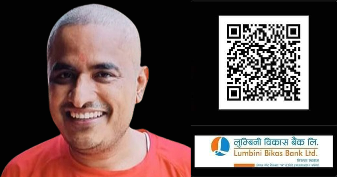 सबै शुभचिन्तक तथा साथीहरूलाई क्यूआर कोडमार्फत आफूले सक्ने सहयोग गरिदिन तथा महतको उपचारका लागि सहयोग जुटाइदिन आग्रह गरिएको छ।