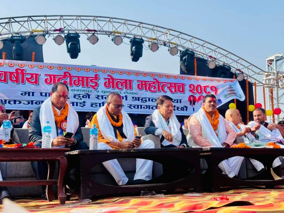 रौतहटको पूर्वीभेगमा पर्ने गढीमाई नगरपालिका ४ सुन्दरपुर स्थित गढीमाई मन्दिरमा लागेको पञ्चवर्षीय मेला महोत्सव २०८१ को उद्घाटन गरेका छन् ।