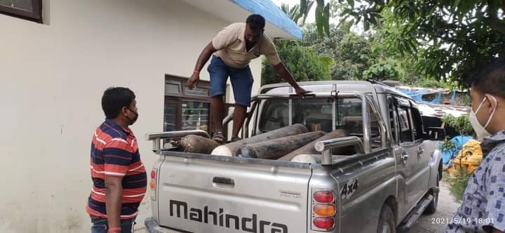 गरुडामा संकलित १३० अक्सिजन सिलिण्डर गरुडा प्रहरीद्धारा वितरण